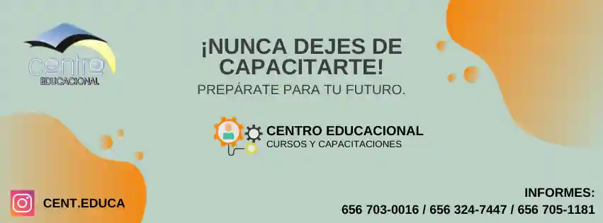 CENTRO EDUCACIONAL te ofrece un espacio en donde puedas compartir tu expertise y tus alumnos puedan acceder a aprendizaje práctico, diverso, con valor curricular, accesible y de corta duración, fomentando la movilidad social y el crecimiento personal y profesional en nuestra comunidad - Informes: 656 703-0016 / 656 324-7447 / WhatsApp 656 705-1181.